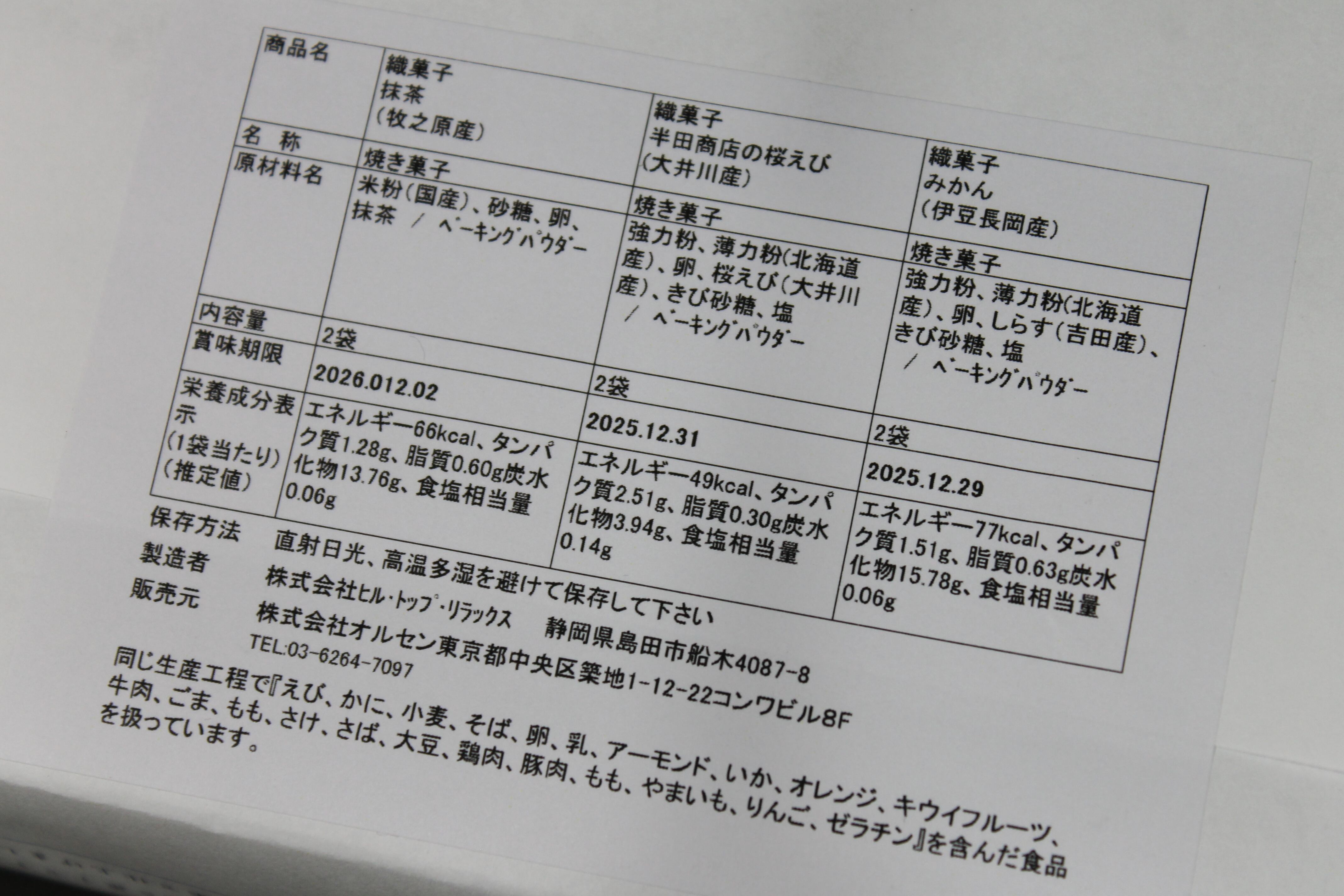 フレーバー 抹茶、みかん、桜えび 各2個入り